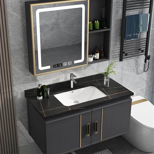新款岩板太空铝浴室柜卫生间洗手柜组合简约洗脸盆酒店面盆洗漱台