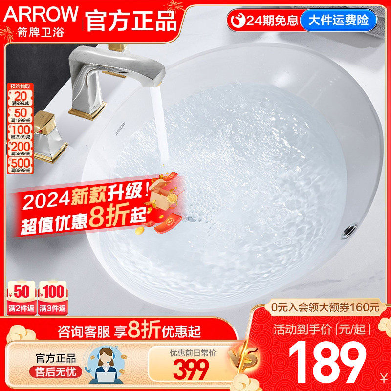 箭牌台下盆家用卫生间陶瓷洗脸洗手台盆 嵌入式面盆小尺寸 AP406E
