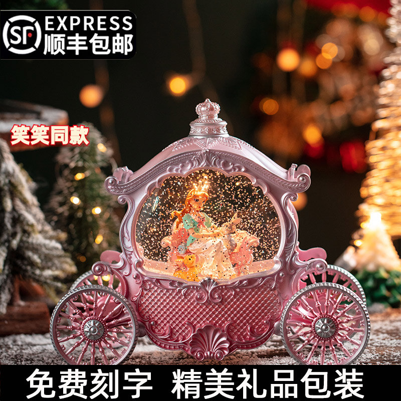 梦幻公主可旋转南瓜马车水晶球音乐盒八音盒女生女孩儿童生日礼物