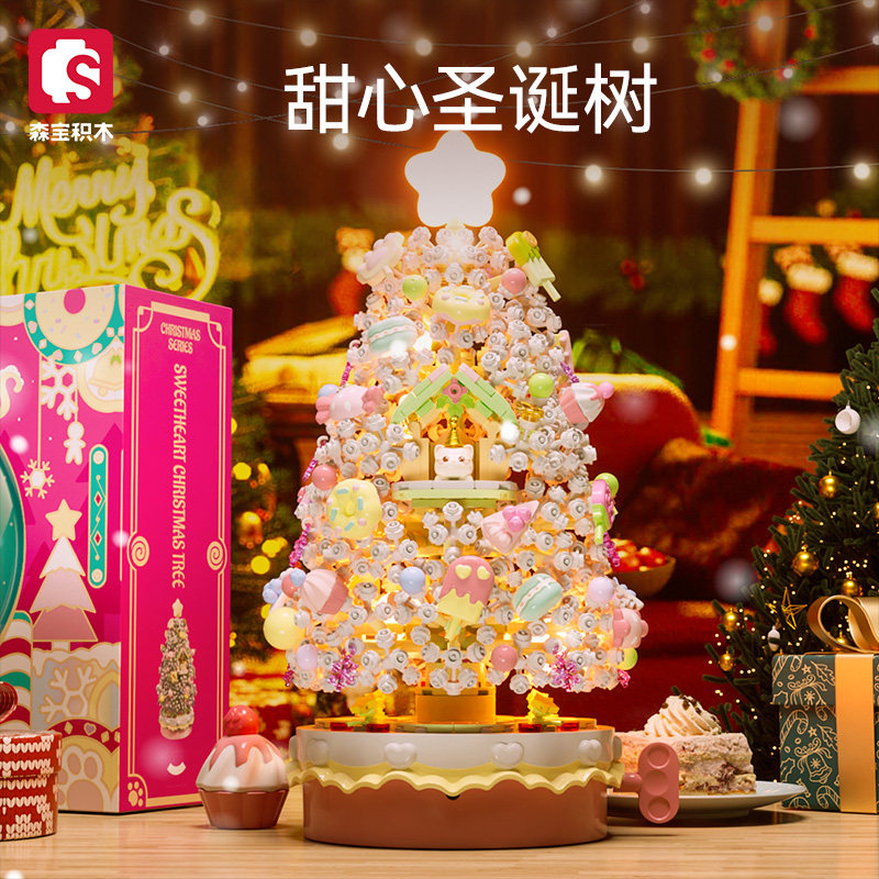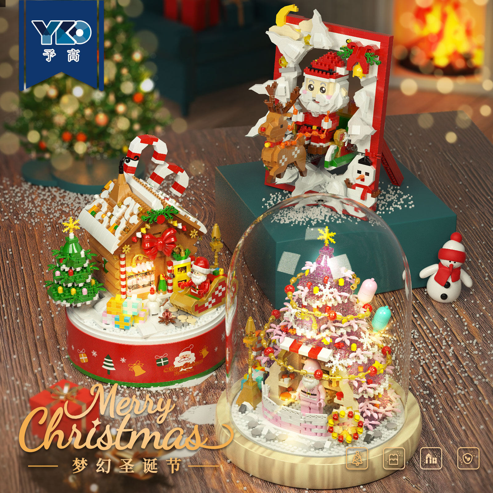 圣诞树积木雪人火车鹿茸铃铛袜子雪橇拼装摆件圣诞节礼物音乐盒女