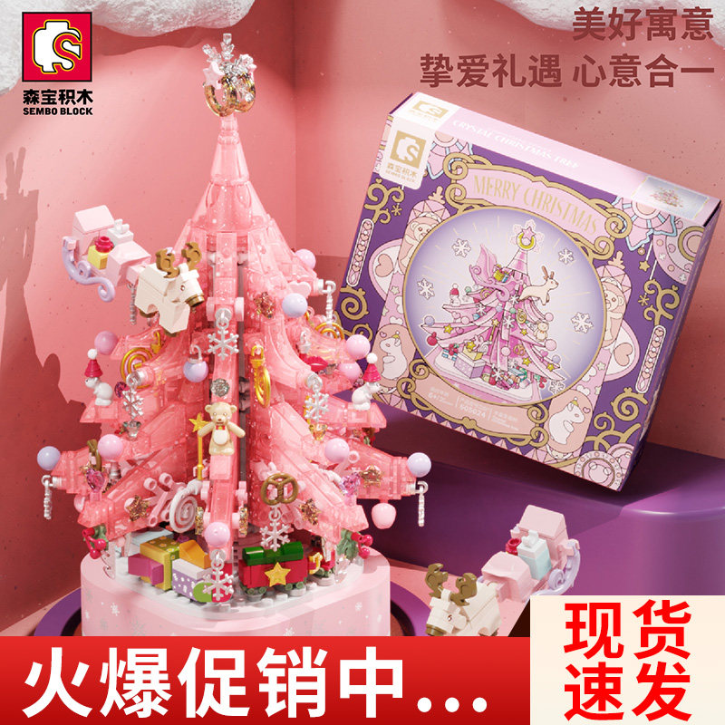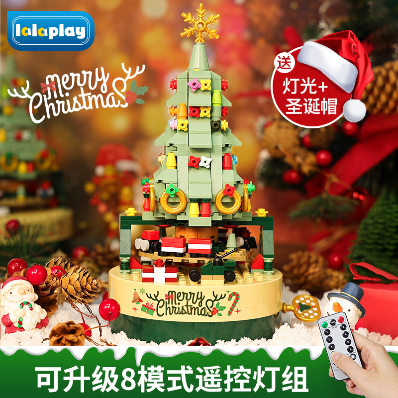 2023新款圣诞树音乐盒积木拼装益智玩具灯光摆件男女孩生节日礼物