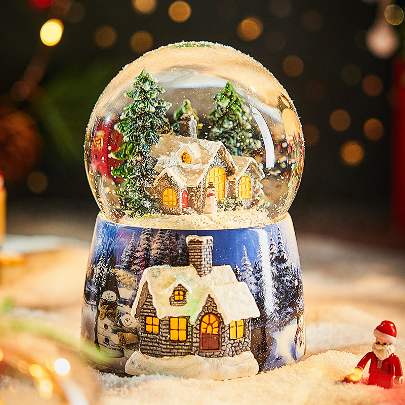 圣诞节礼物水晶球八音盒飘雪花旋转发光老人树音乐盒儿童闺蜜礼品