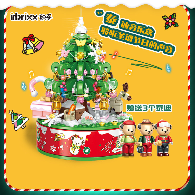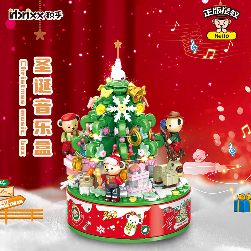 圣诞树积木八音盒音乐盒旋转拼装玩具男生女孩摆件儿童圣诞节礼物