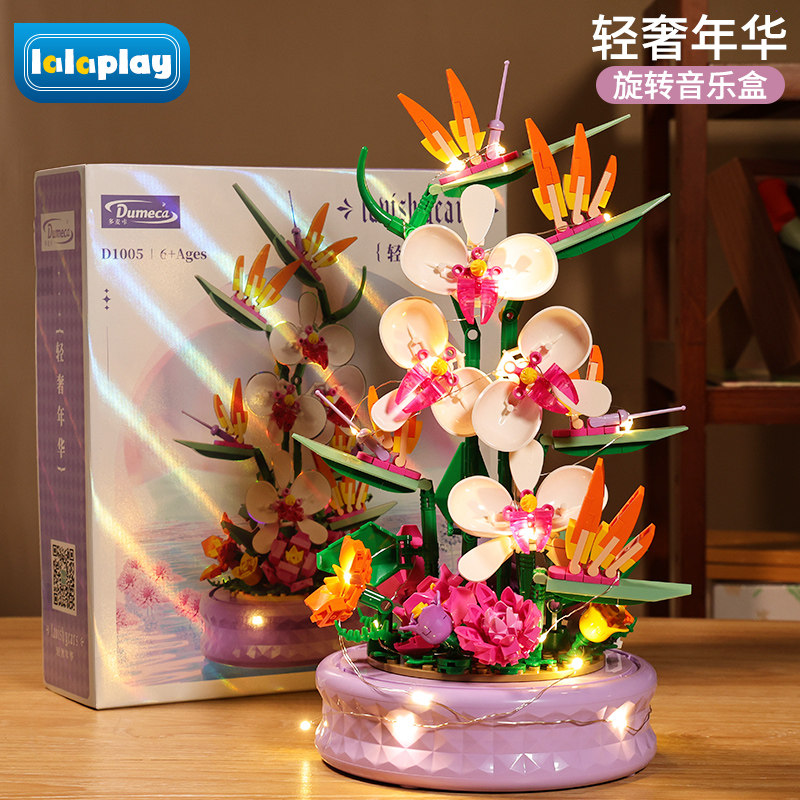 轻奢年华积木花八音盒旋转音乐盒花瓣女孩2024年龙年新年礼物女生