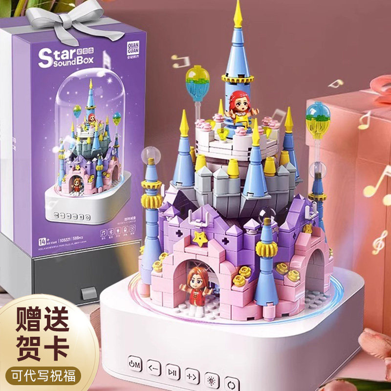 送女孩子生日礼物新年音乐盒城堡八音盒积木女生益智拼装玩具儿童