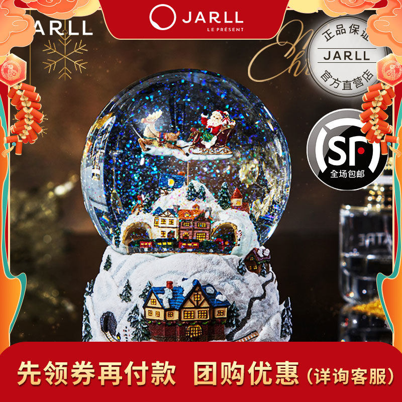 JARLL幸福的雪白圣诞水晶球音乐盒雪花雪橇女生日创意圣诞节礼物