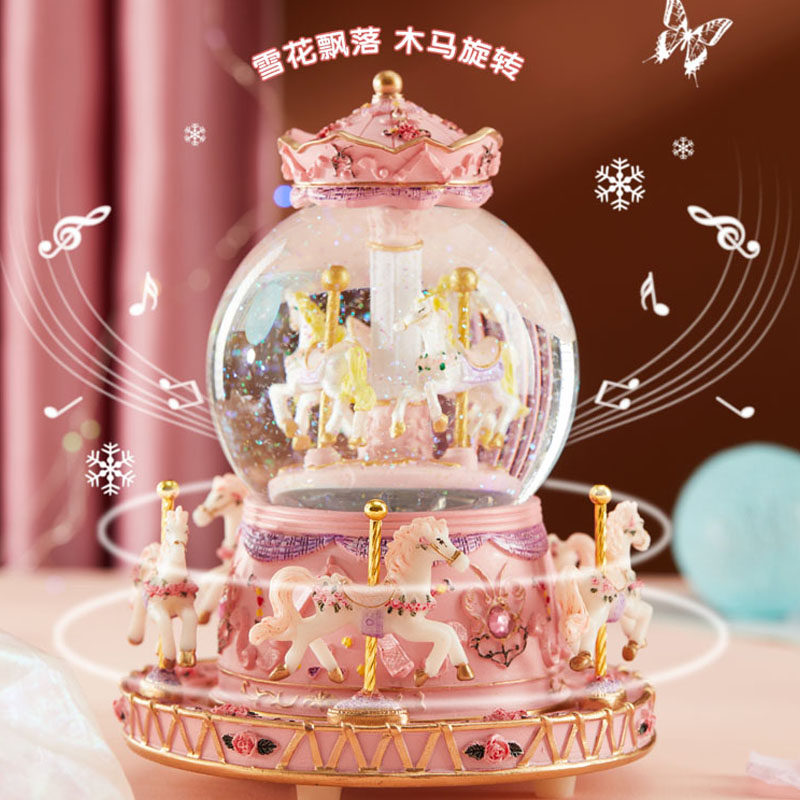 水晶球音乐盒可旋转木马送小女生八音盒女孩儿童公主新年生日礼物