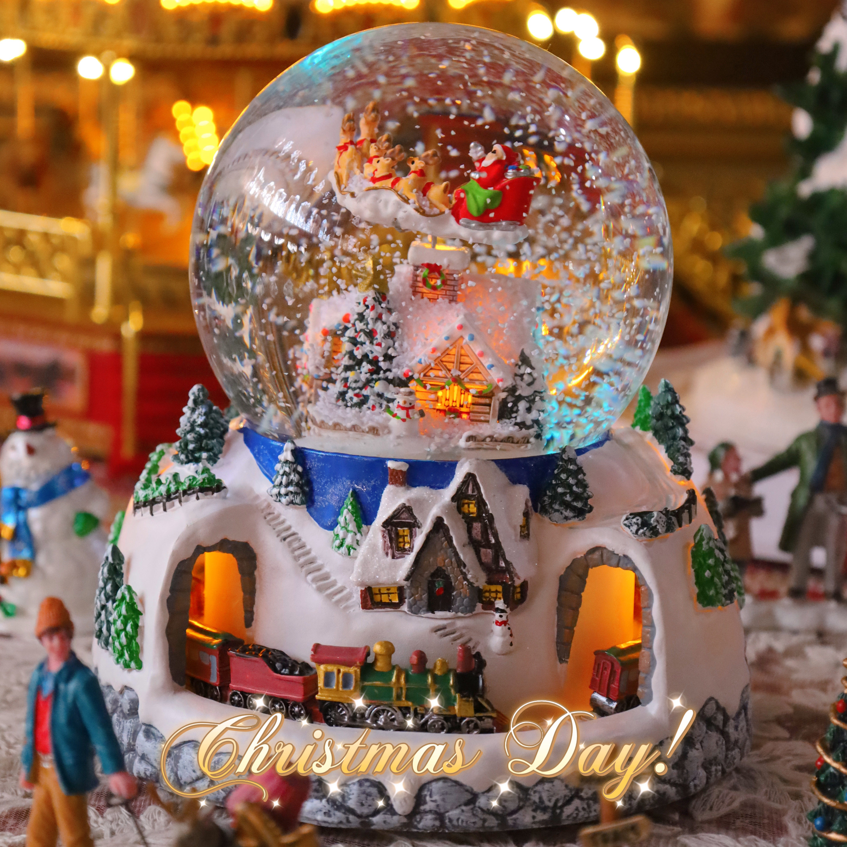 圣诞节梦幻平安夜音乐盒玩具八音盒水晶球汽车儿童飘雪花生日礼物