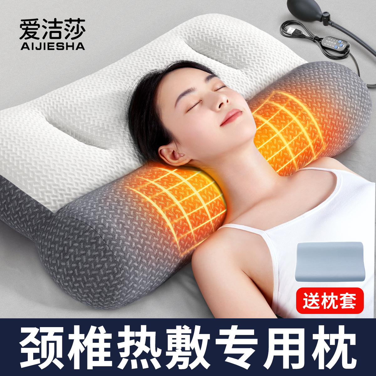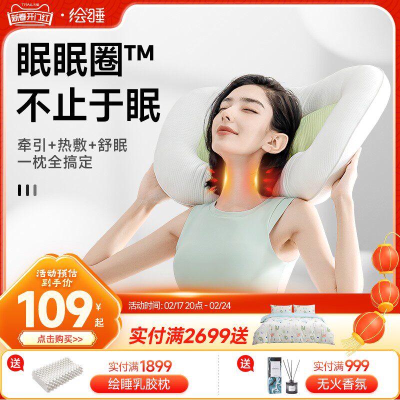 绘睡眠眠圈护颈枕牵引枕充气枕头热敷按摩缓解疲劳气囊定时助睡眠