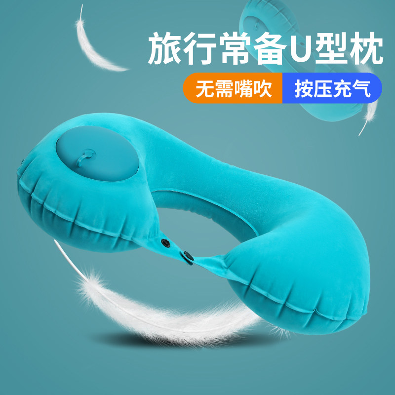 充气u型枕按压可折叠颈枕旅行坐飞机神器护颈枕便携冰丝凉感u形枕