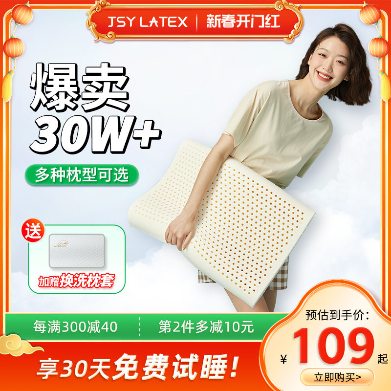 jsy泰国天然乳胶枕头橡胶儿童枕心成人护颈枕助睡眠latex乳胶枕芯