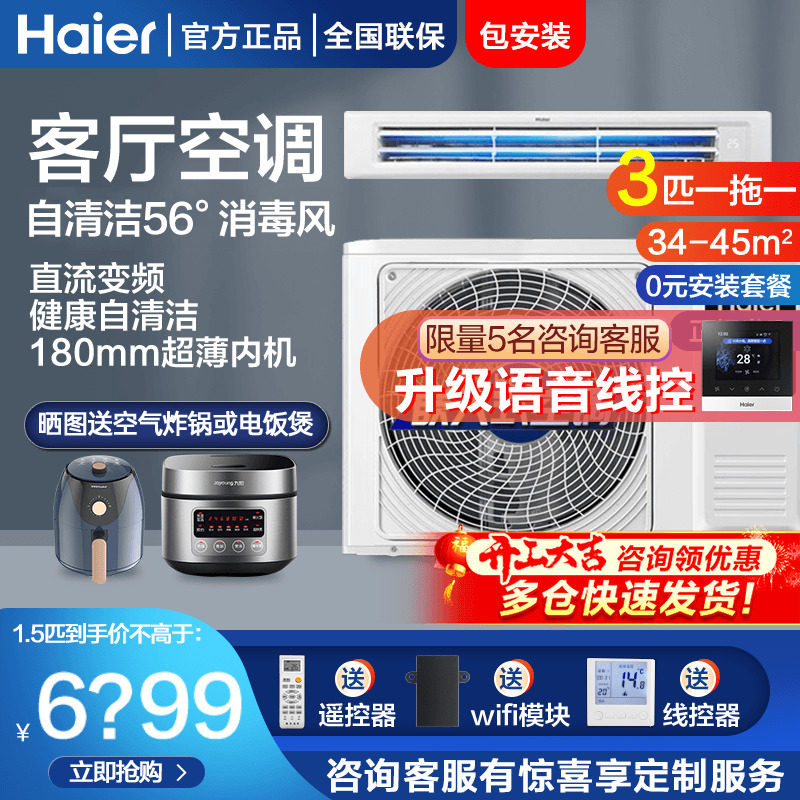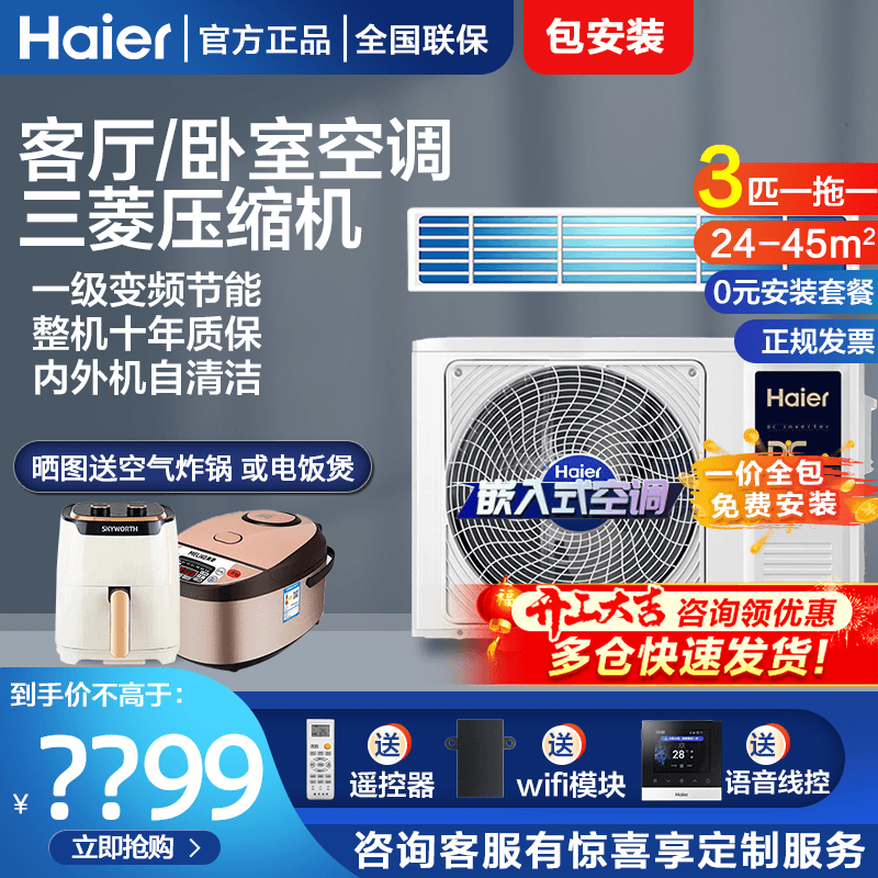 海尔大3匹风管机一拖一家用中央空调客厅全直流变频隐藏式变频星