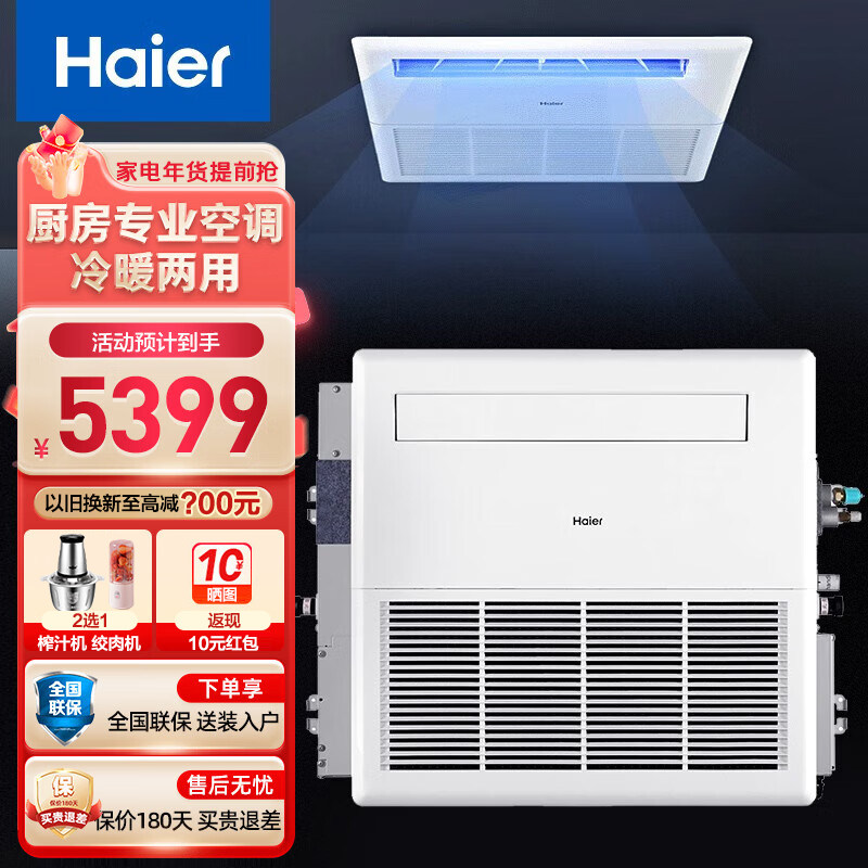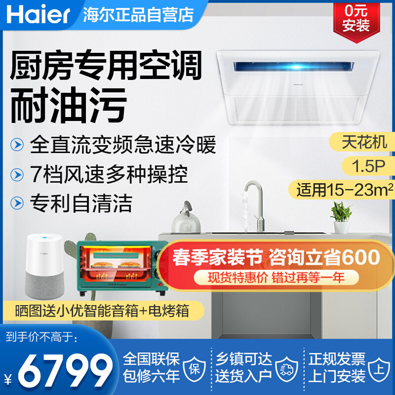 海尔1.5P匹中央空调家用厨房风管机嵌入式防油烟大冷量全直流变频