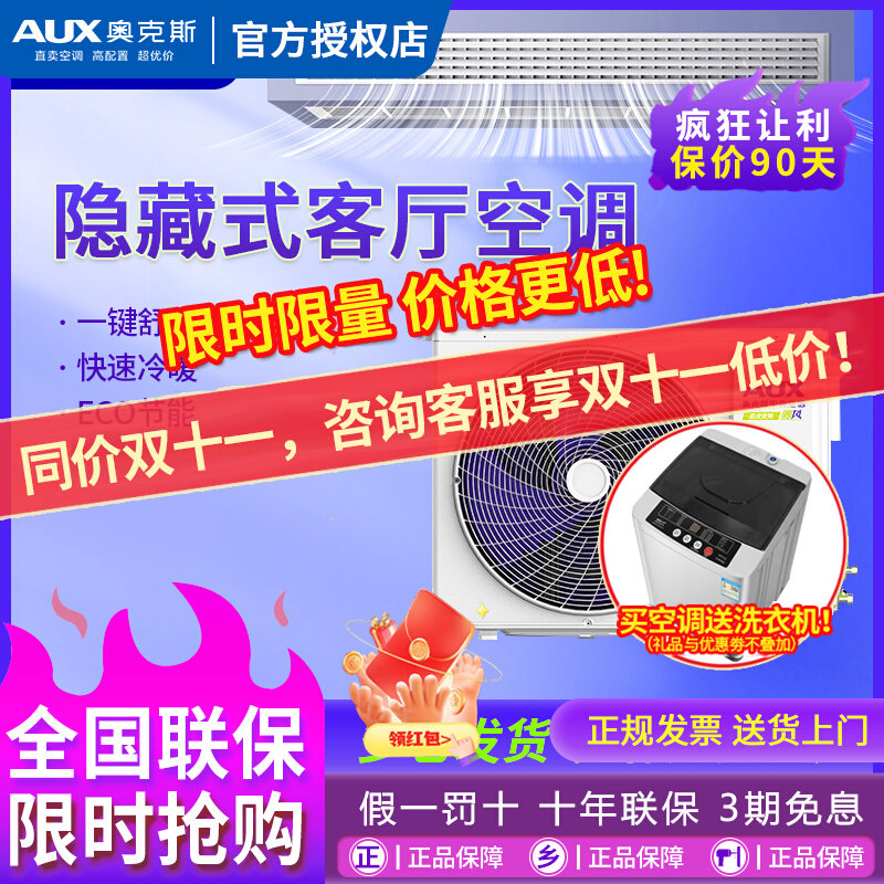 奥克斯大3匹风管机嵌入式客厅家用变频一拖一中央空调冷暖2匹空调