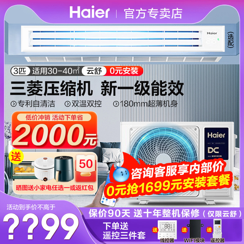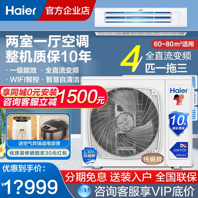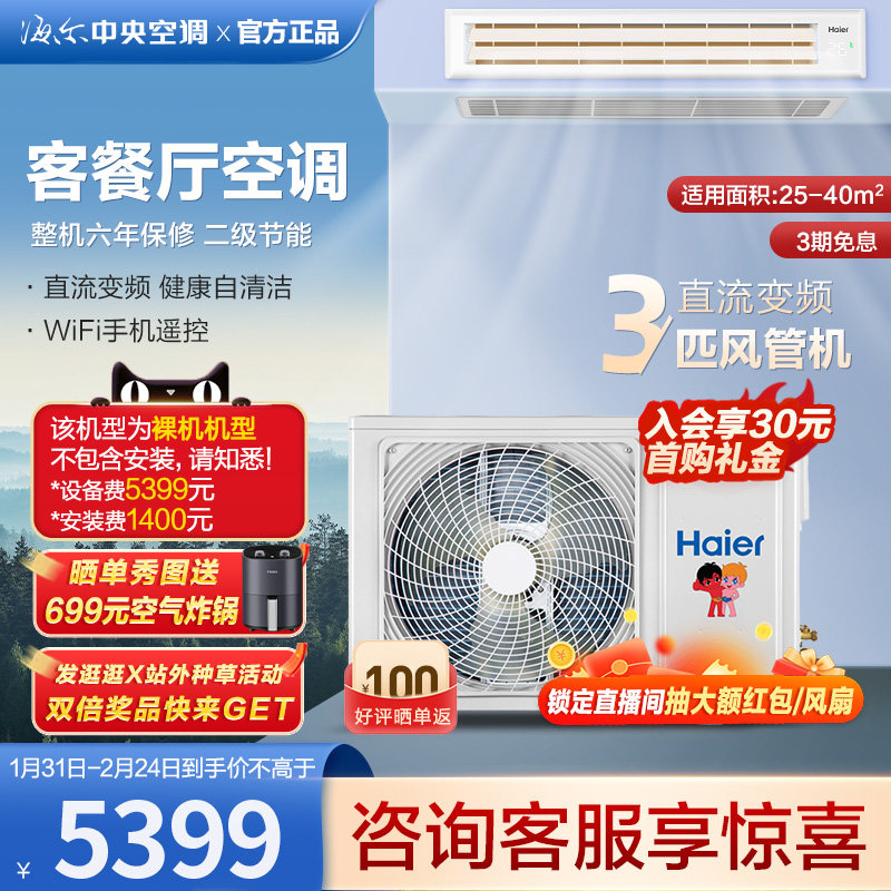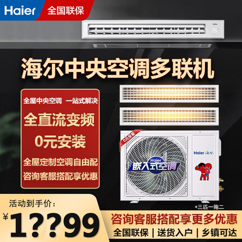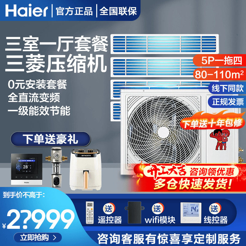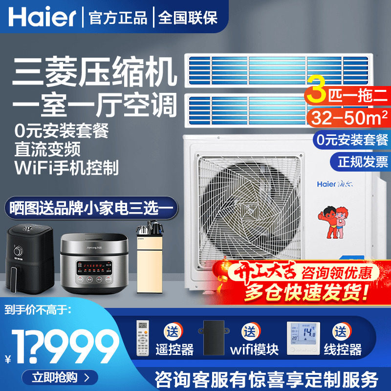 【0元安装】海尔风管机大3匹2p家用中央空调一拖一客餐厅变频云璟
