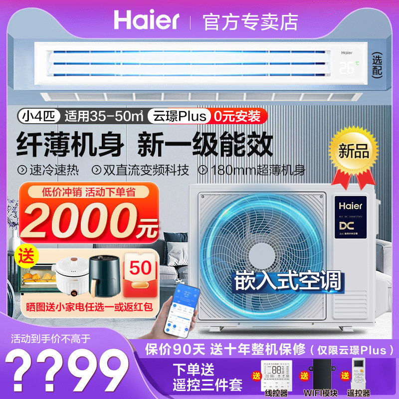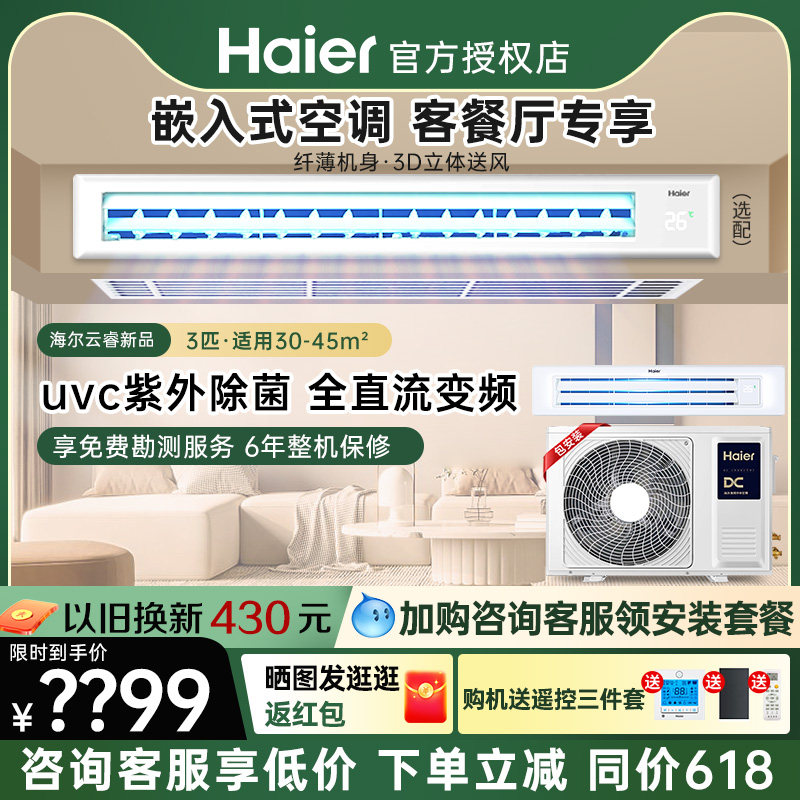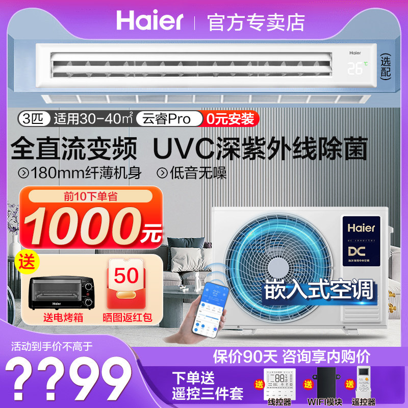 海尔风管机家用3匹一拖一中央空调直流变频卡机嵌入式客厅云璟pro