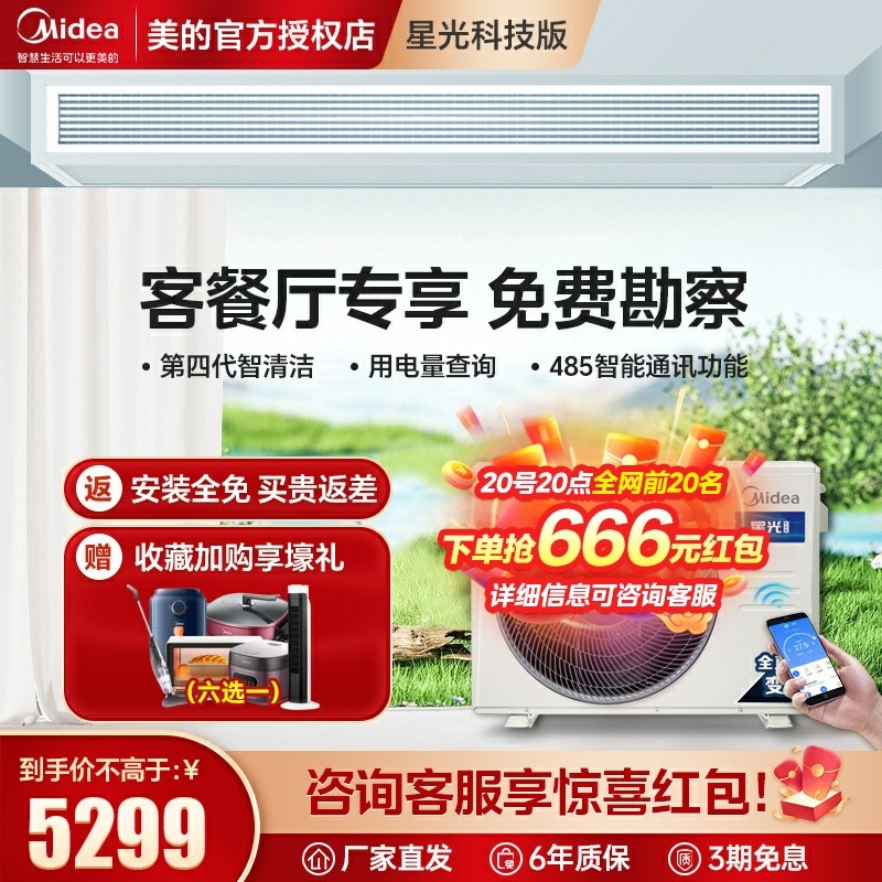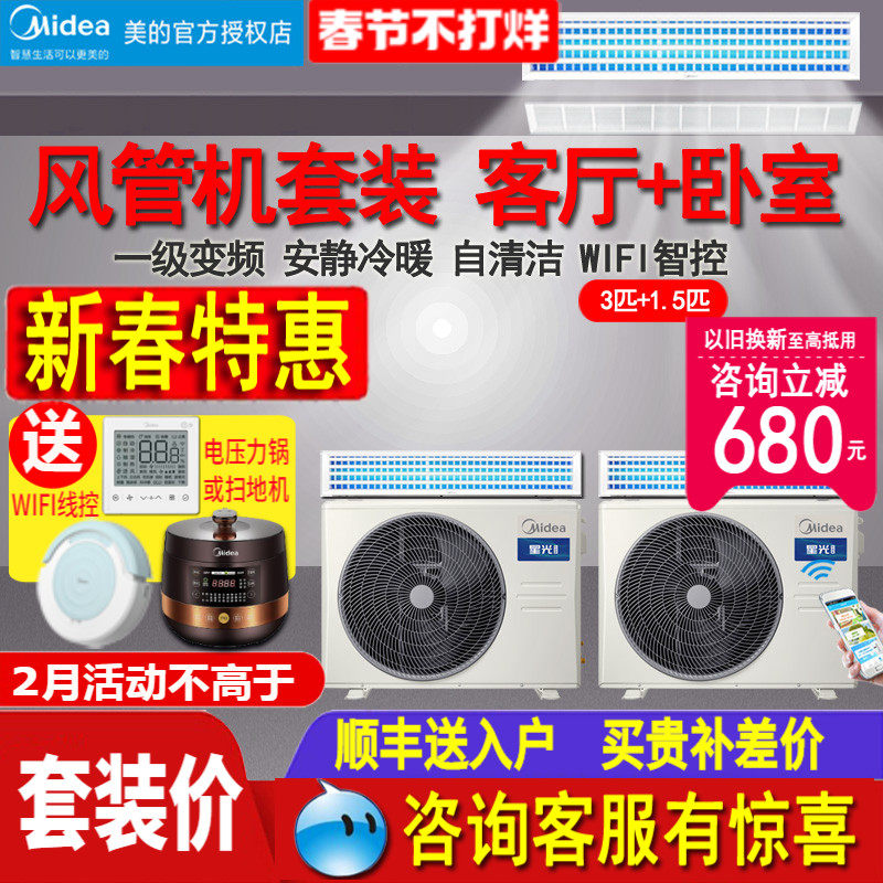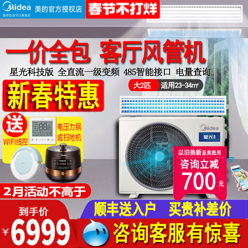 美的风管机一拖一中央空调家用大3匹5匹客餐厅变频隐藏星光科技