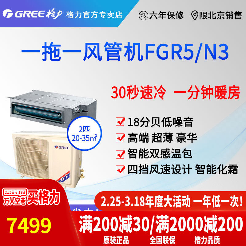 Gree格力中央空调家用客厅风管机一级小4匹一拖一冷暖变频风静享