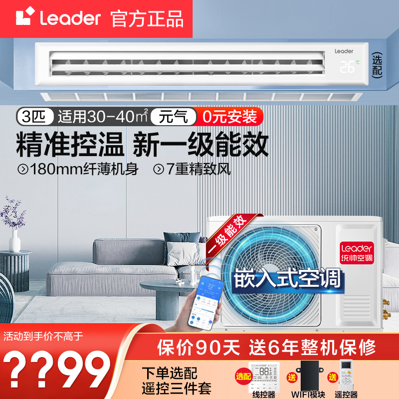 海尔风管机大3P匹一拖一变频中央空调家用客厅卡机嵌入式统帅DDB