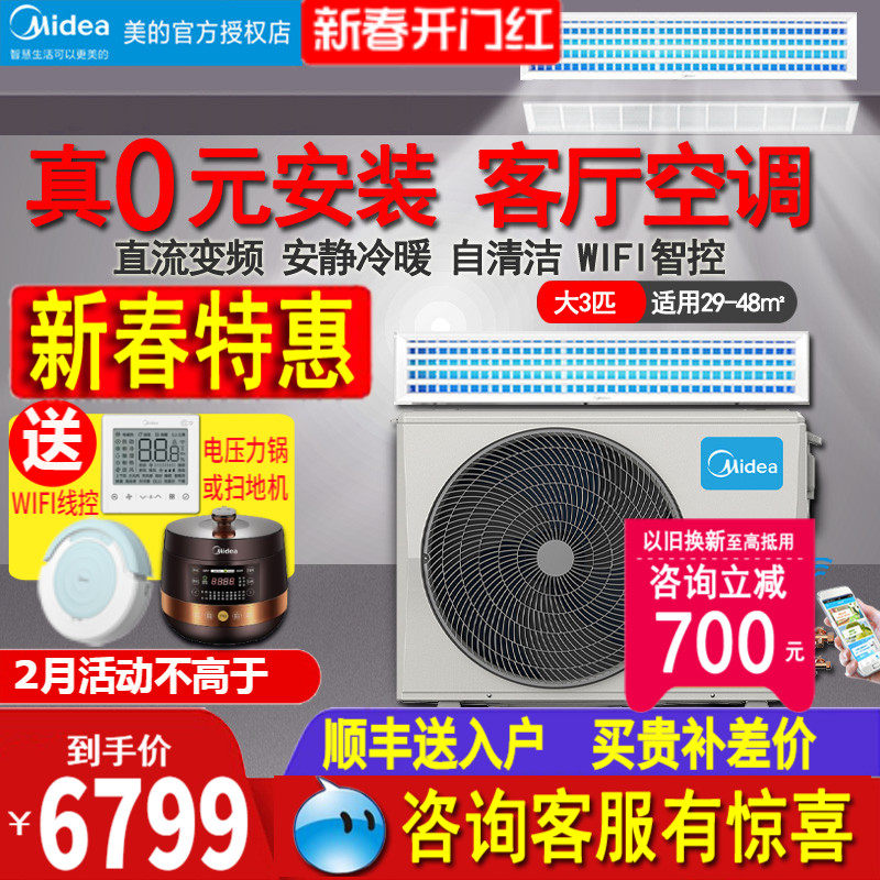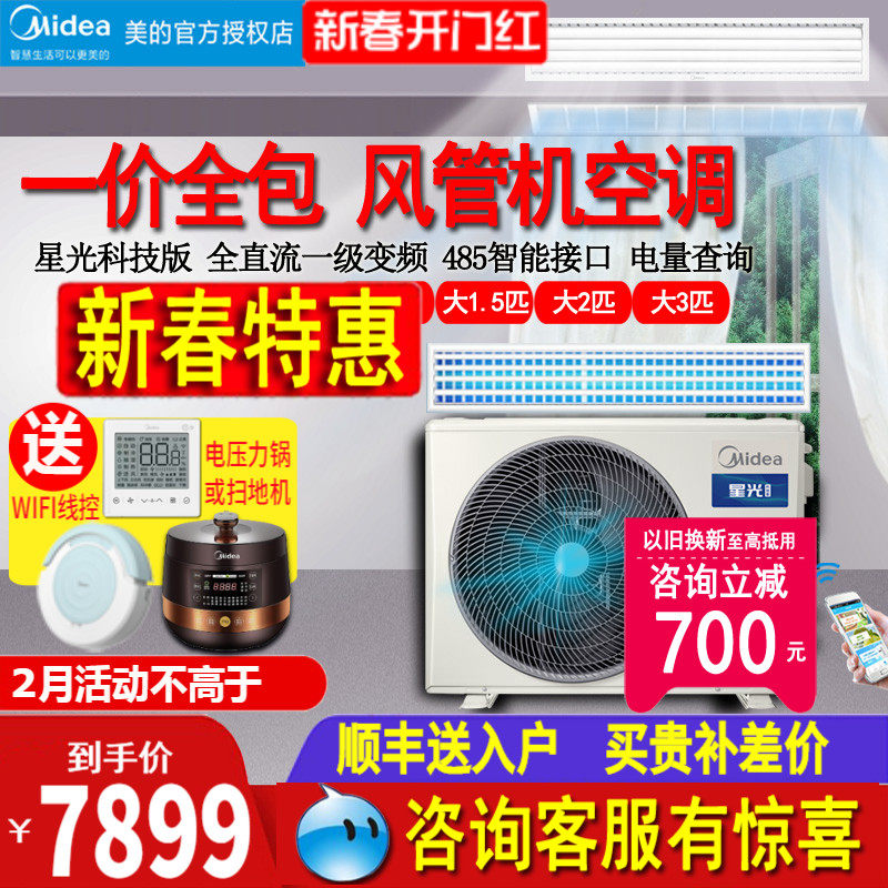美的大3匹风管机客厅空调卧室1.5P/2P变频冷暖72T/120T商用5匹GC