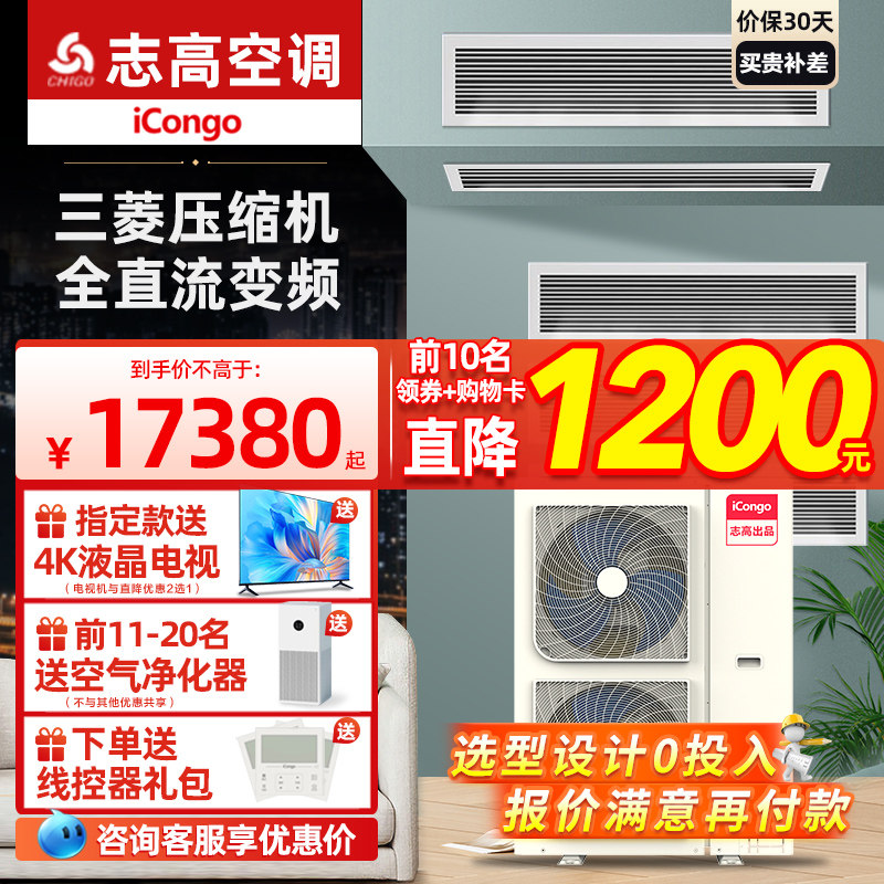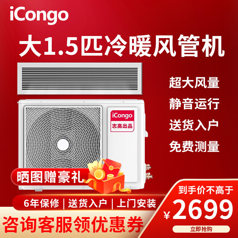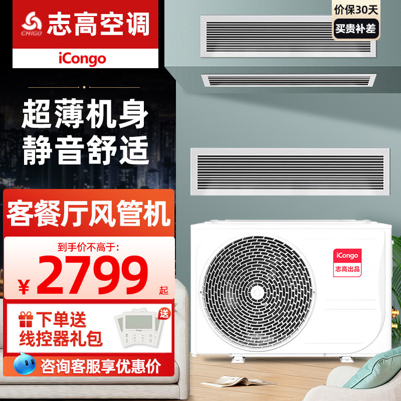 志高中央空调家用3匹2匹1.5匹p风管机客厅一拖一 冷暖变频卡机