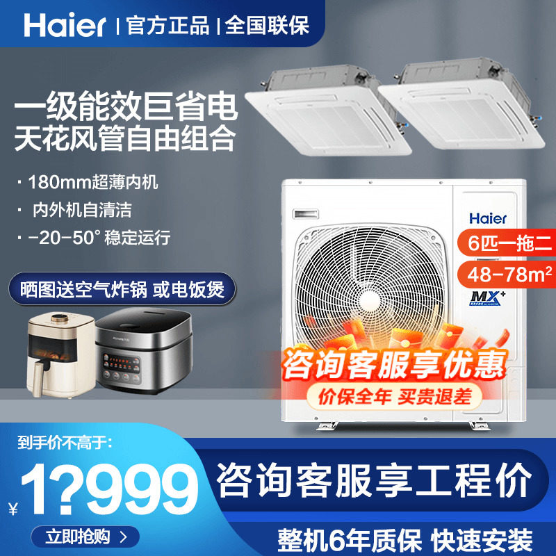 海尔6匹一拖二家用中央空调风管机天花机1级变频商用RFC140DXSAV1