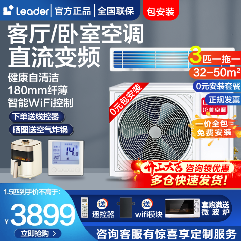 海尔统帅风管机一拖一3匹P中央空调家用变频客厅隐藏嵌入式超薄