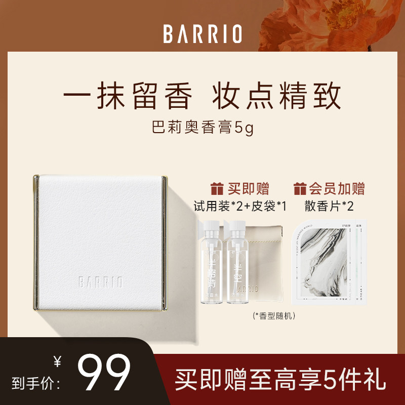 Barrio巴莉奥小羊皮固体香膏半格诗香水小众男士女士持久淡香清新