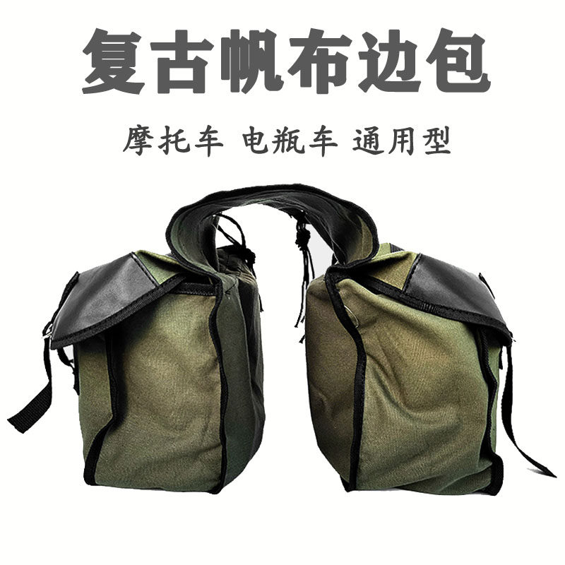 复古摩托车挂包侧边包帆布驮包电动车后座车尾包工具包挎包马鞍包