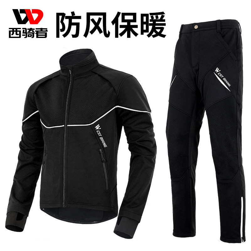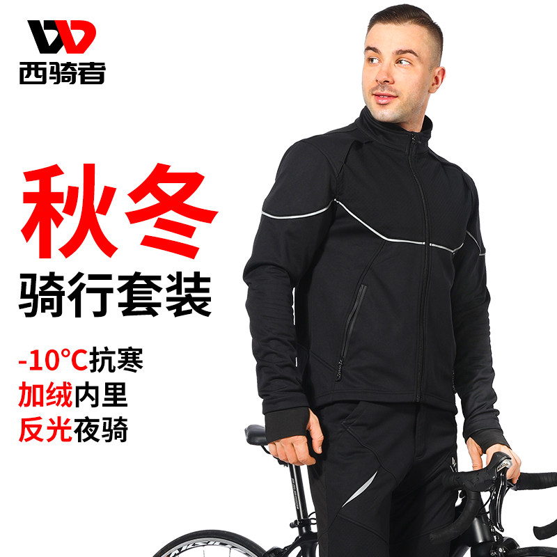 西骑者自行车骑行服套装加绒保暖外套长裤山地公路车加厚防风衣冬