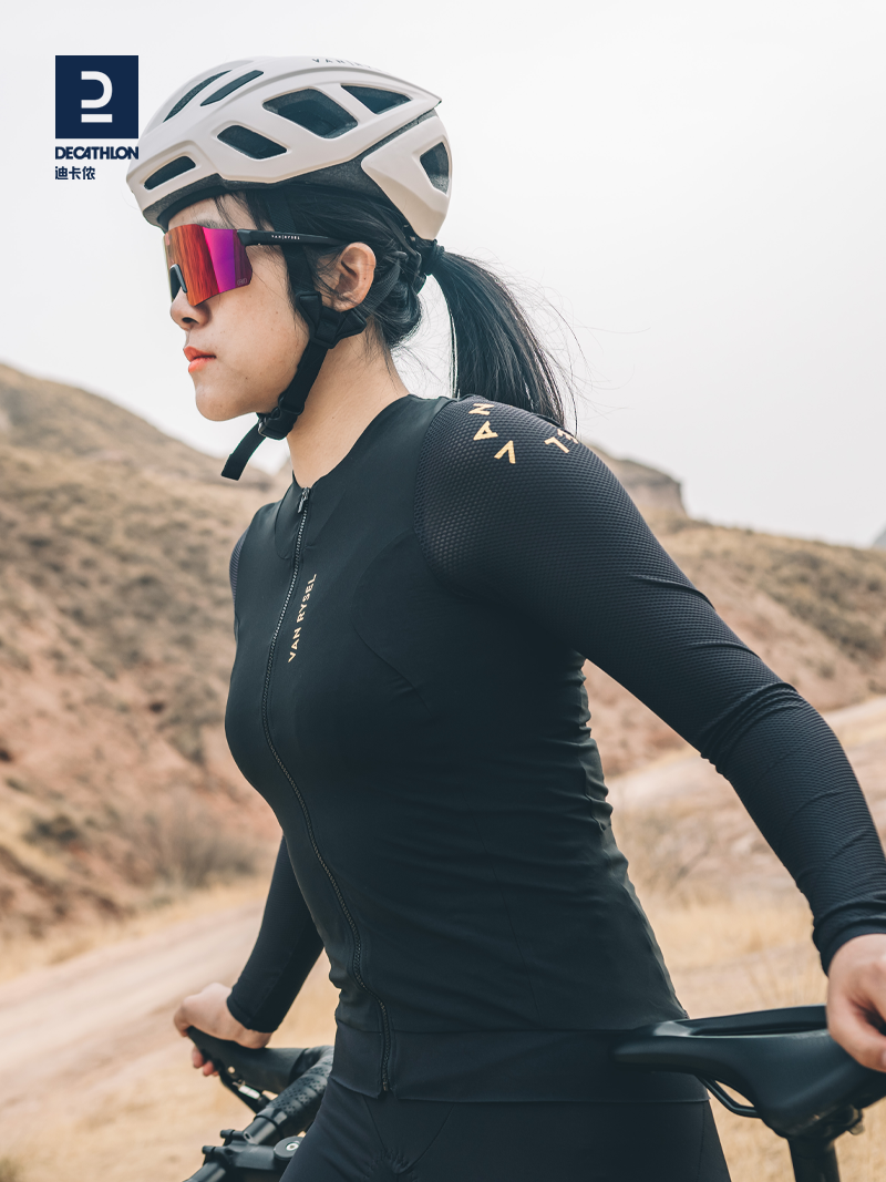 迪卡侬公路自行车骑行服男防风长袖骑行裤长裤轻量化防晒衣OVRC