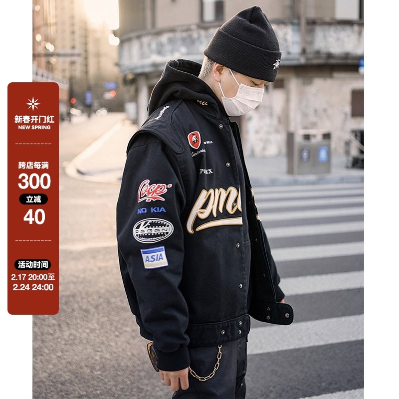 PMW 机车夹克外套男士春秋百搭刺绣赛车衣美式骑行痞帅潮牌棒球服