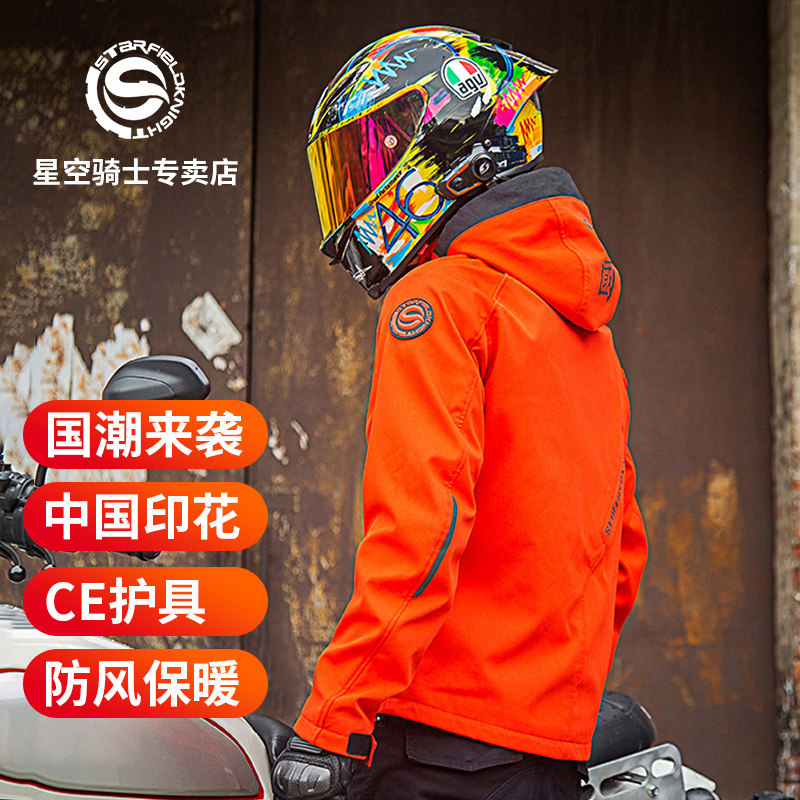 新摩托车a星天蝎联名骑行服休闲骑行服外套男女秋冬软壳A星冲锋衣