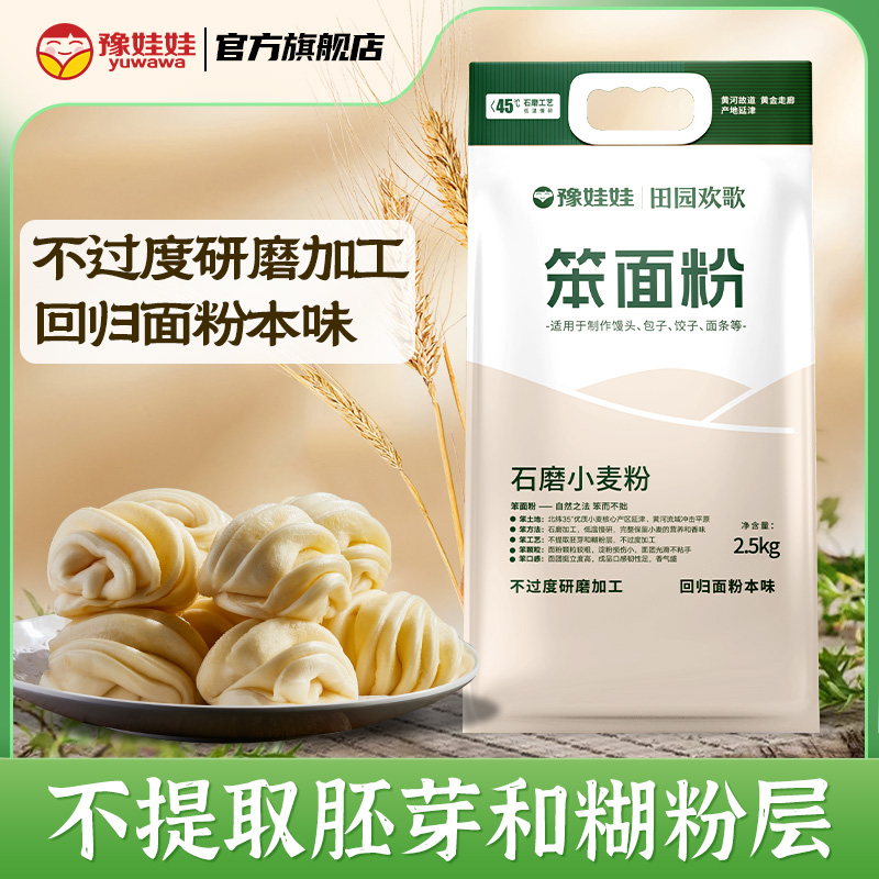 新国标豫娃娃笨面粉无添加石磨小麦粉家用馒头通用中高筋面粉5斤