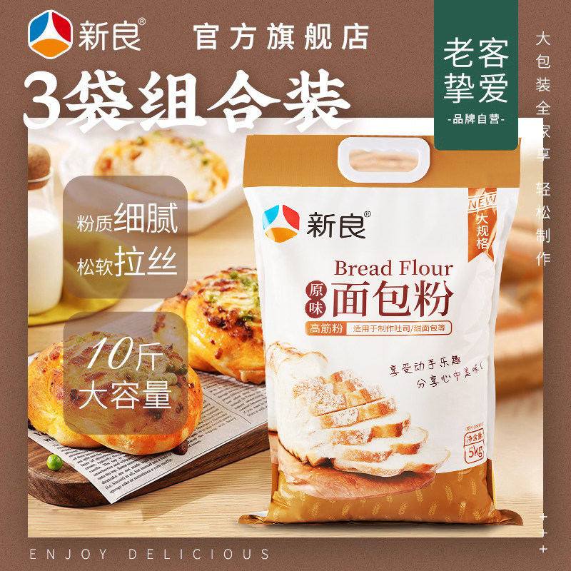 新良原味面包粉5kg*3高筋面粉 烘焙原料面包机家用烘焙粉