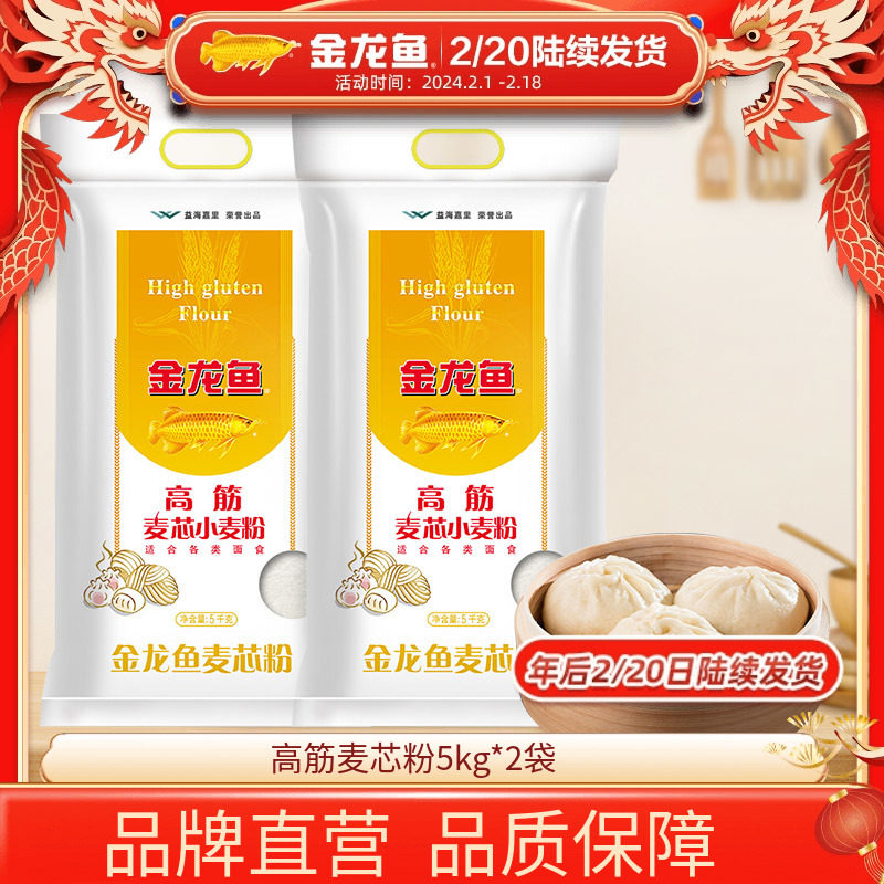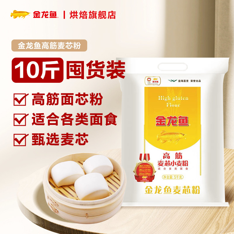 金龙鱼高筋麦芯粉5kg面粉家用面包粉馒头饺子面条高筋面粉10斤