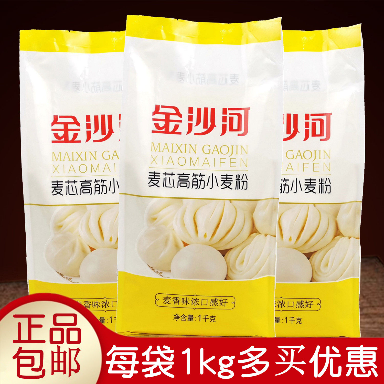 正品金沙河面粉麦芯高筋小麦粉1kgx2袋 筋道麦香馒头面条包子包邮