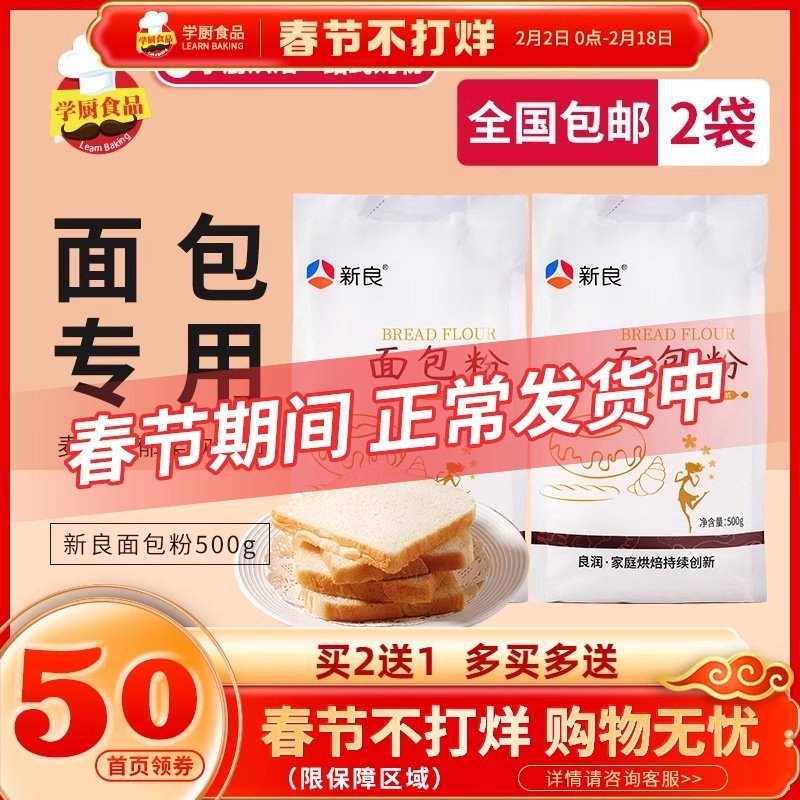 新良面包粉500g小麦粉披萨面包机用高筋原味面粉中式糕点烘焙原料