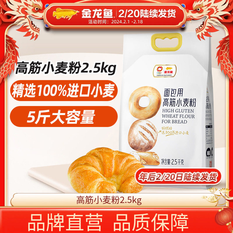 金龙鱼面包用高筋小麦粉2.5kg低筋面粉面包粉披萨粉蛋糕粉饼干粉
