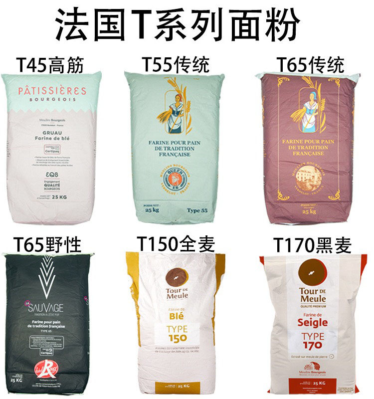 法国面粉T45T55T65法式面包粉高筋粉T80T150全麦粉T170黑麦粉