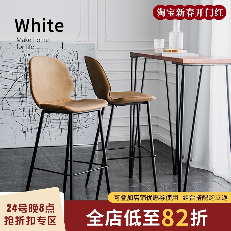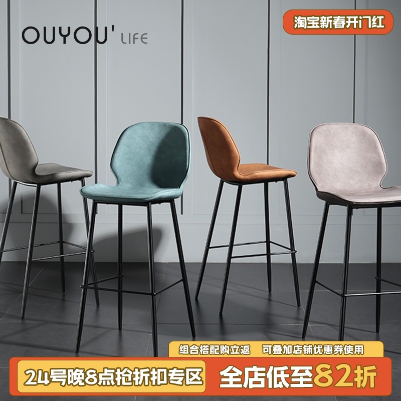 北欧轻奢吧台椅简约家用高脚凳现代酒吧吧椅高脚椅皮椅铁艺吧台凳