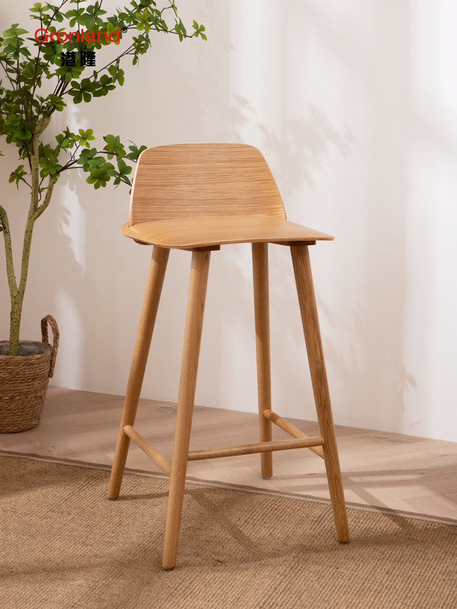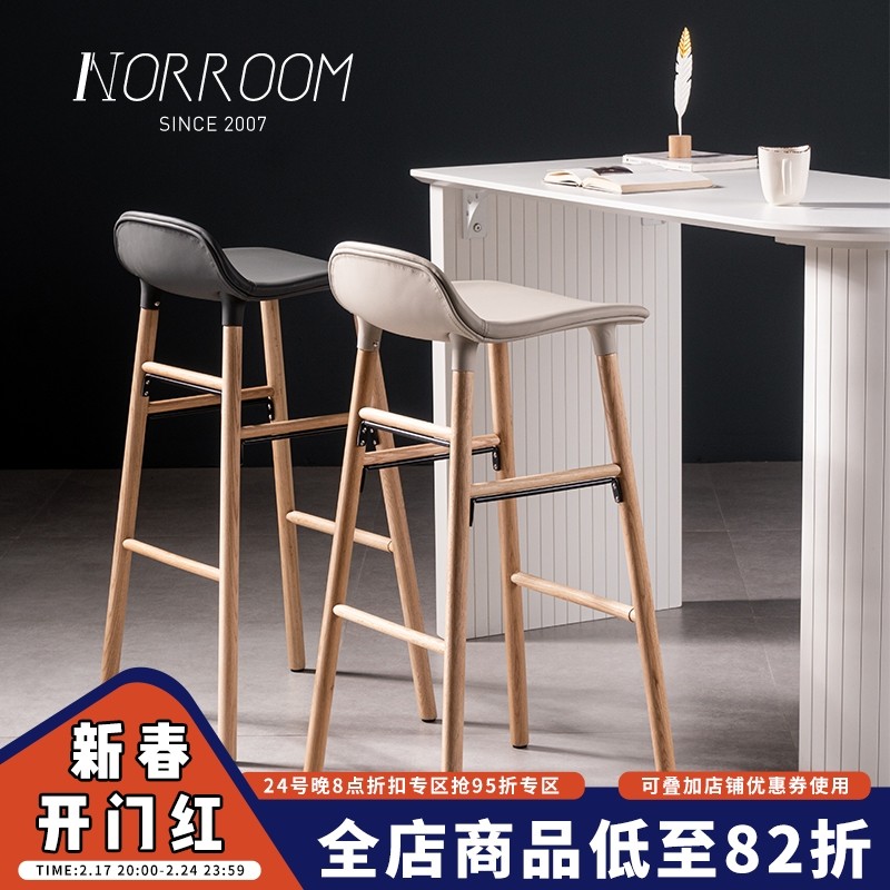 NORROOM北欧实木吧台椅家用轻奢高脚凳现代简约奶茶店休闲高椅子