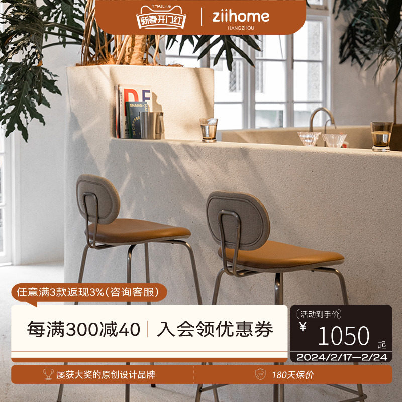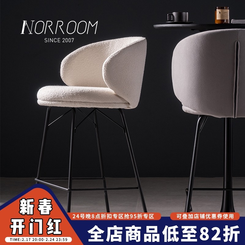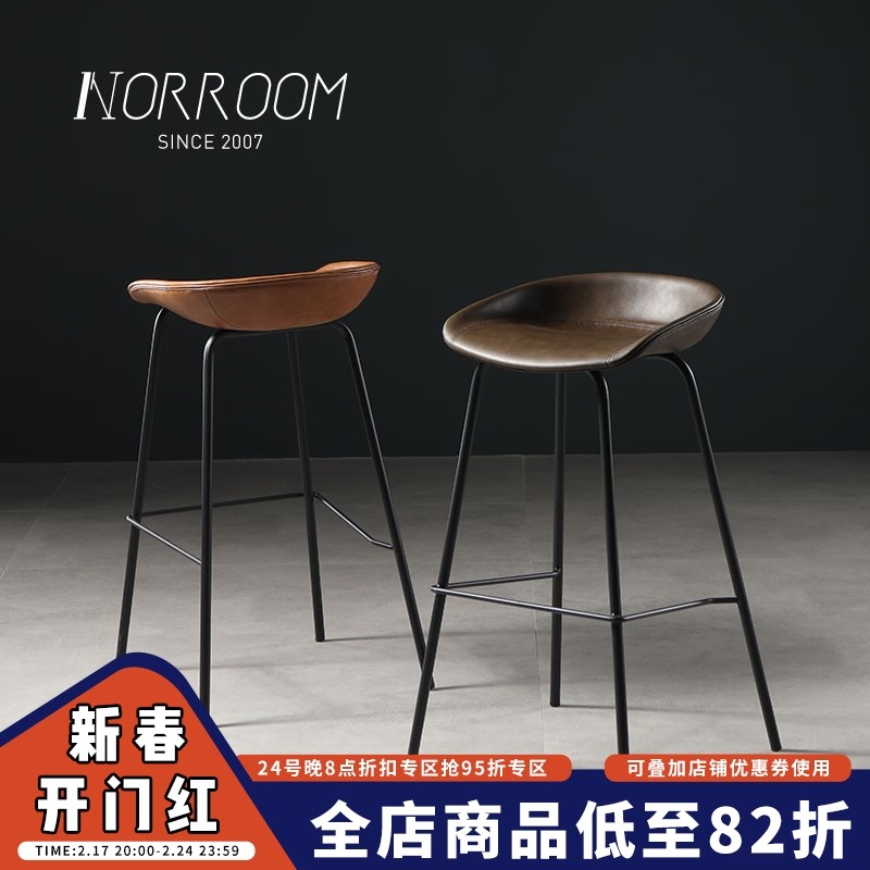 NORROOM北欧复古简约吧台椅轻奢靠背铁艺吧凳工业风酒吧皮高脚凳