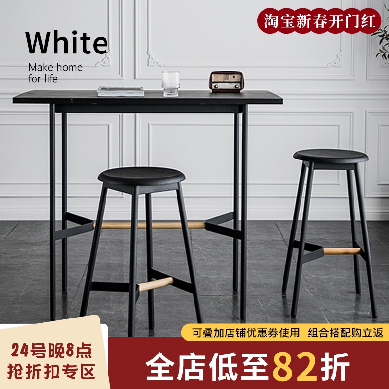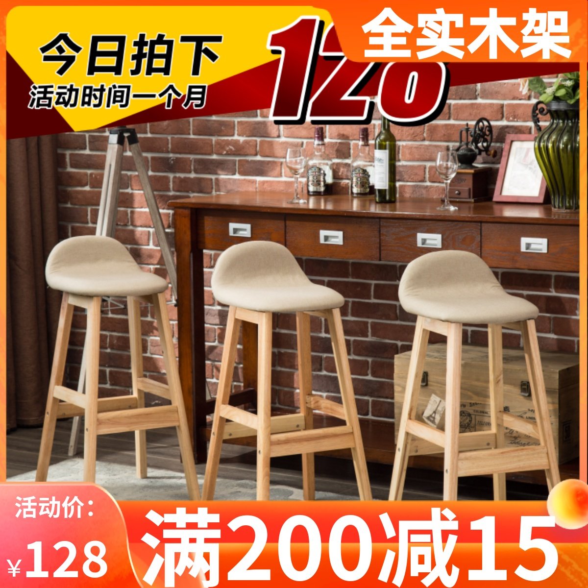 北欧实木吧台椅 家用高凳子奶茶店高脚凳现代简约酒吧凳加厚吧凳