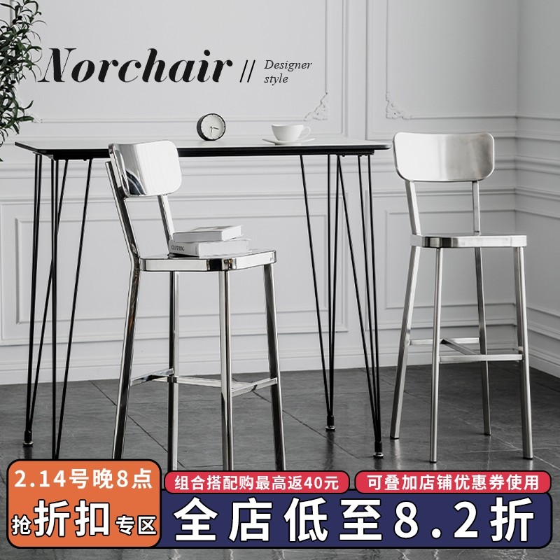 Norchair网红简约现代不锈钢高脚椅子北欧家用吧椅酒吧高凳子靠背