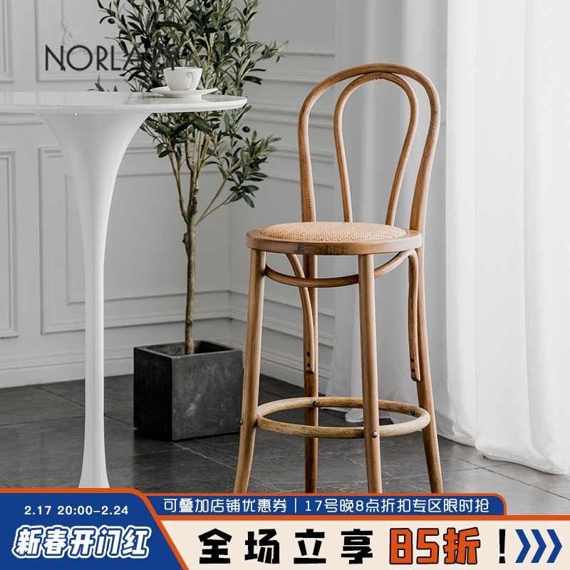 ins中古实木高脚吧椅北欧简约设计师创意酒吧椅法式复古吧台凳子