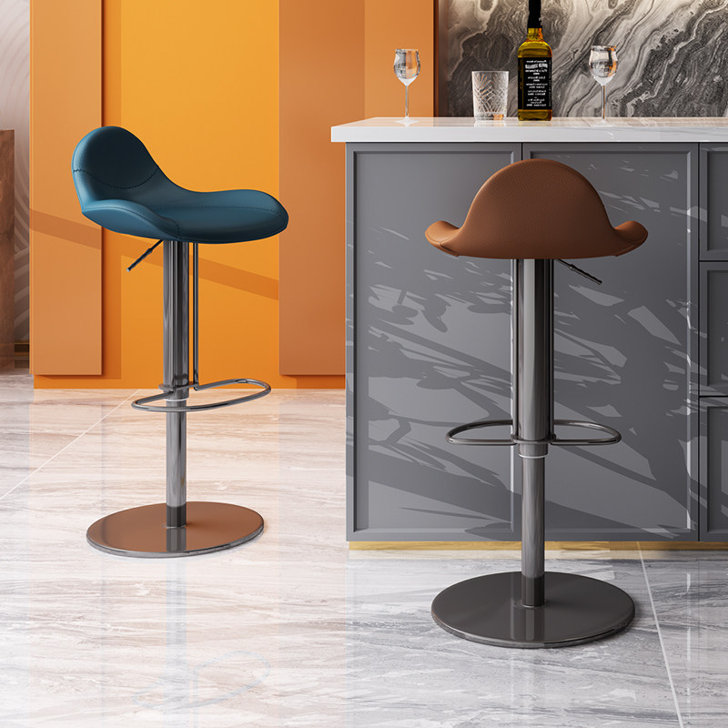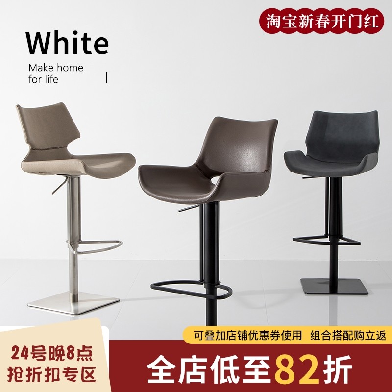 真皮吧台凳家用酒吧凳轻奢极简吧台椅不锈钢升降旋转高脚凳吧凳