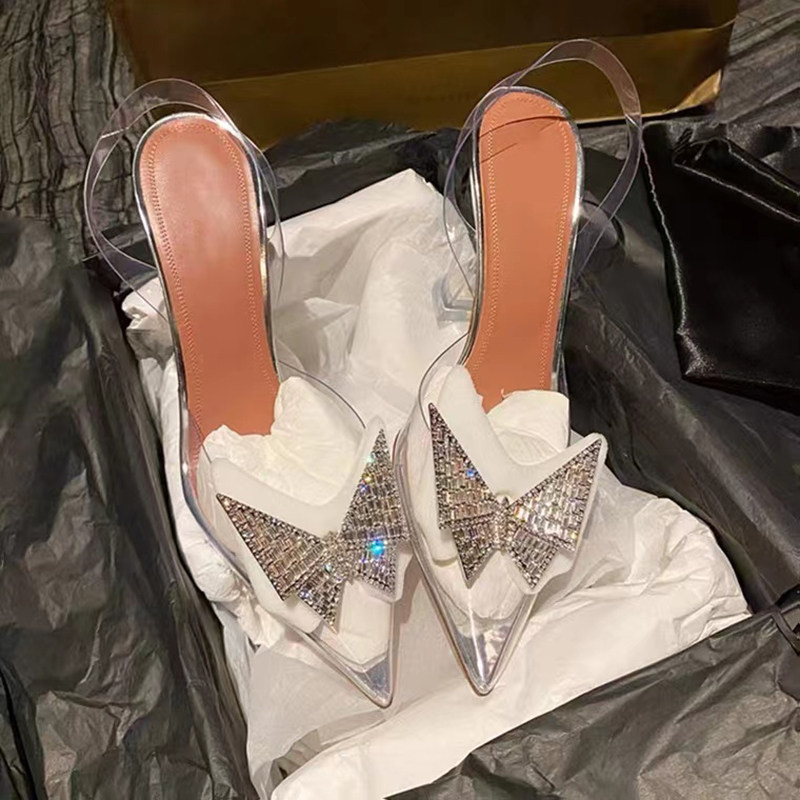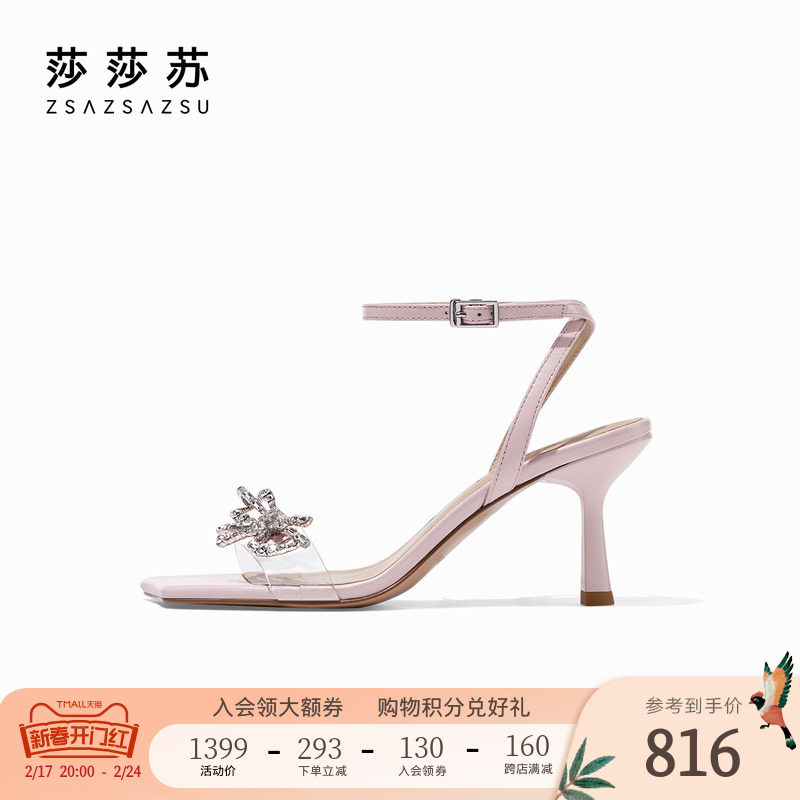 [梦幻芭比]莎莎苏2023夏季新款透明水钻气质一字带高跟凉鞋婚鞋女
