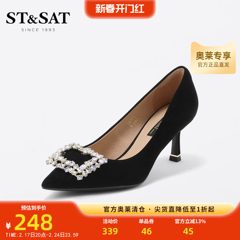 星期六包头凉鞋2022春新款尖头优雅细高跟闪耀通勤女鞋SS21114211