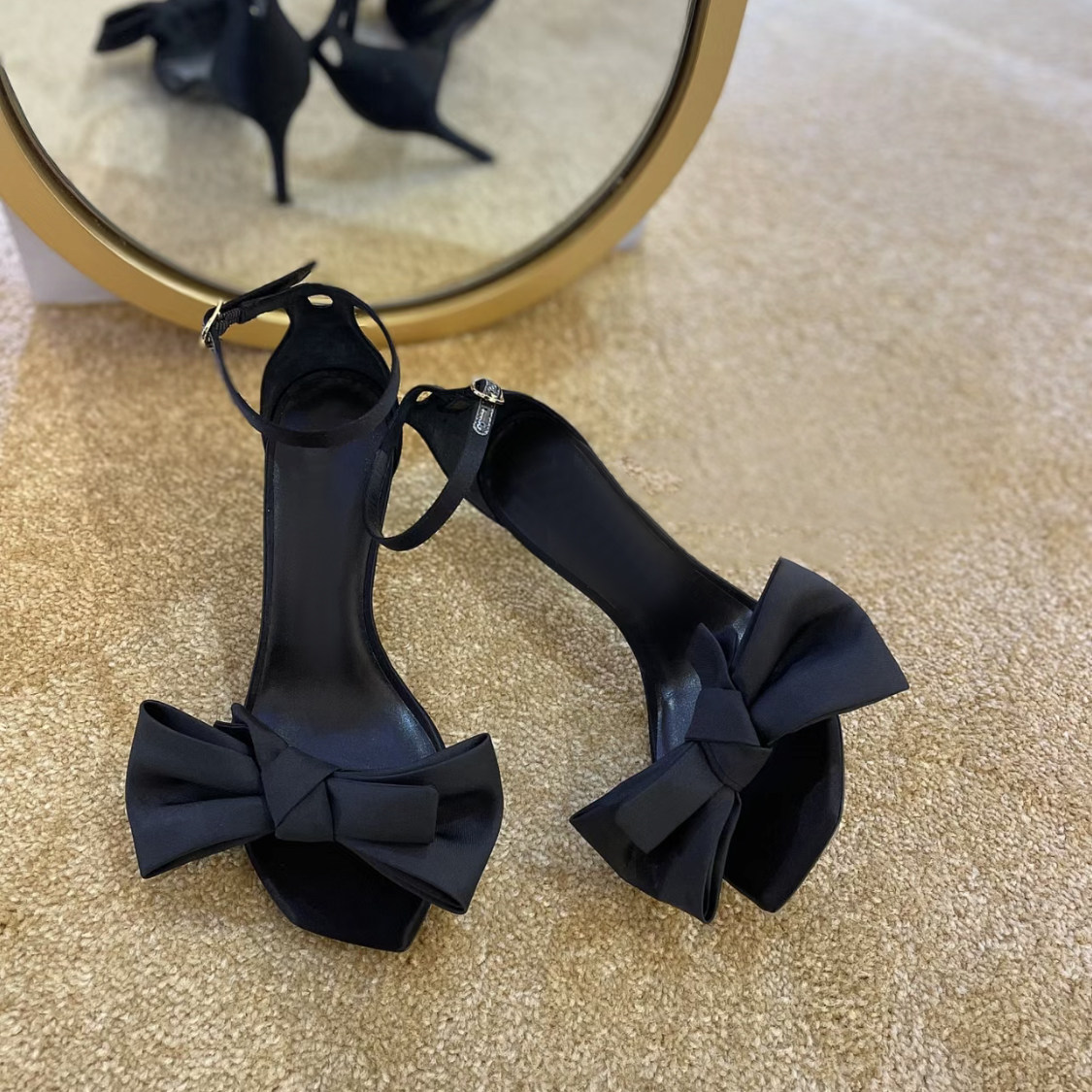 时装仙女风气质蝴蝶结凉鞋性感一字扣带细跟高跟鞋小码313233女鞋